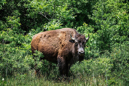 American Bison White Modern Wood Framed Art Print with Double Matting by Alderman, Joe