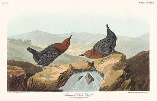 American Water Ouzel White Modern Wood Framed Art Print with Double Matting by Audubon, John James