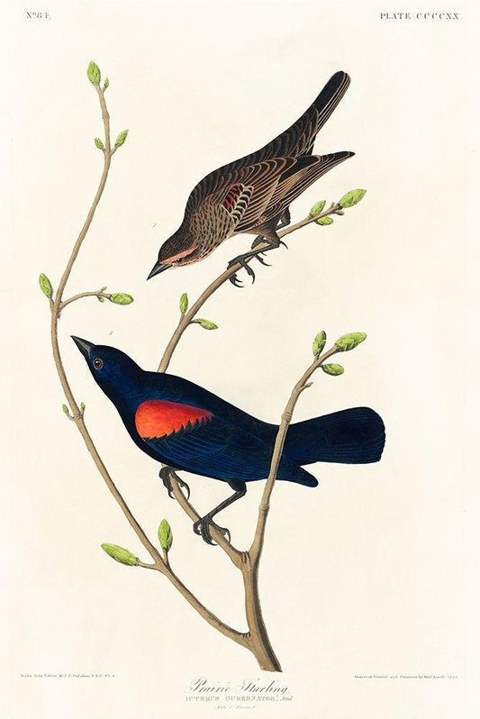 Prairie Starling White Modern Wood Framed Art Print with Double Matting by Audubon, John James