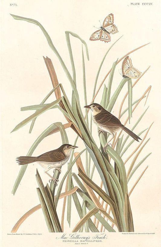 MacGillivrays Finch White Modern Wood Framed Art Print with Double Matting by Audubon, John James