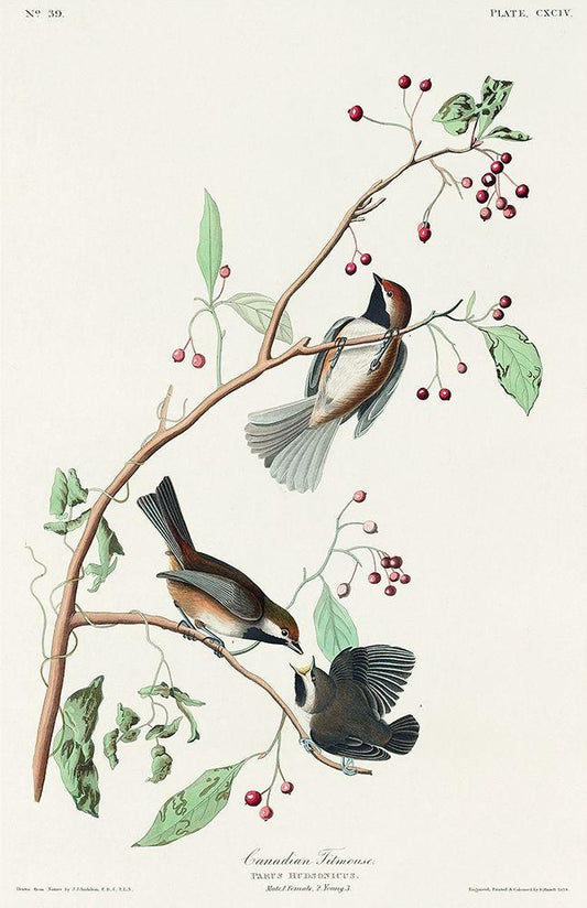 Canadian Titmouse White Modern Wood Framed Art Print with Double Matting by Audubon, John James