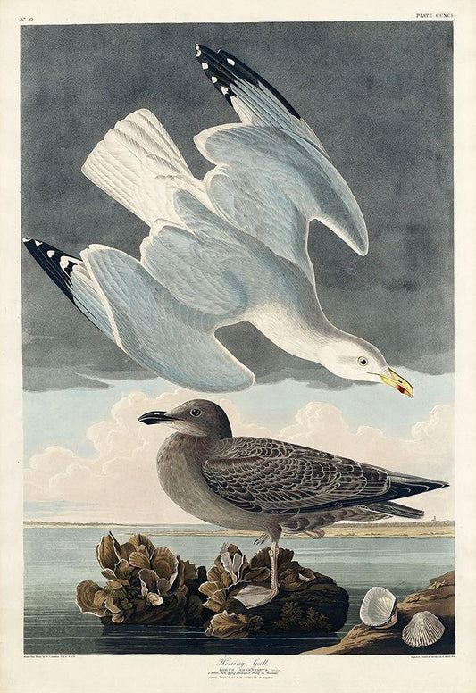 Herring Gull White Modern Wood Framed Art Print with Double Matting by Audubon, John James