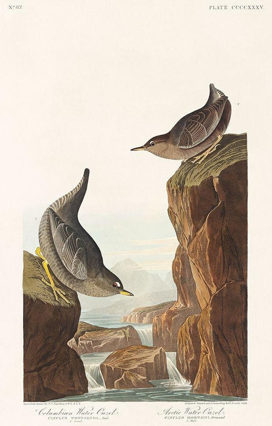 Columbian Water Ouzel and Arctic Water Ouzel White Modern Wood Framed Art Print with Double Matting by Audubon, John James