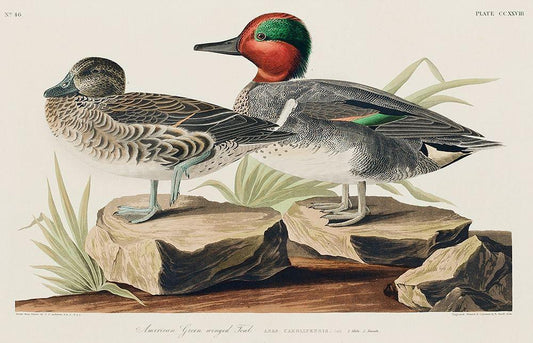 Green winged Teal White Modern Wood Framed Art Print with Double Matting by Audubon, John James