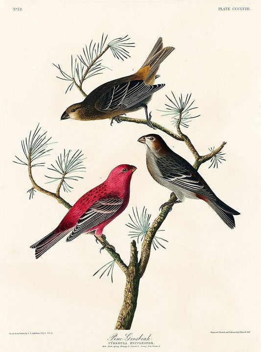 Pine Grosbeak White Modern Wood Framed Art Print with Double Matting by Audubon, John James