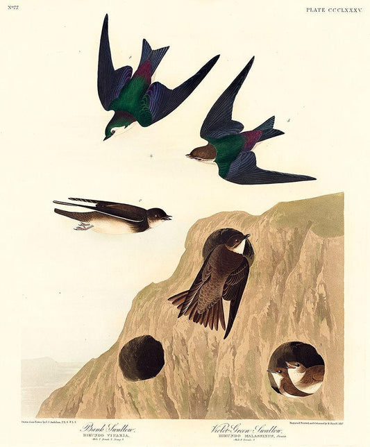 Bank Swallow and Violet-green Swallow White Modern Wood Framed Art Print with Double Matting by Audubon, John James