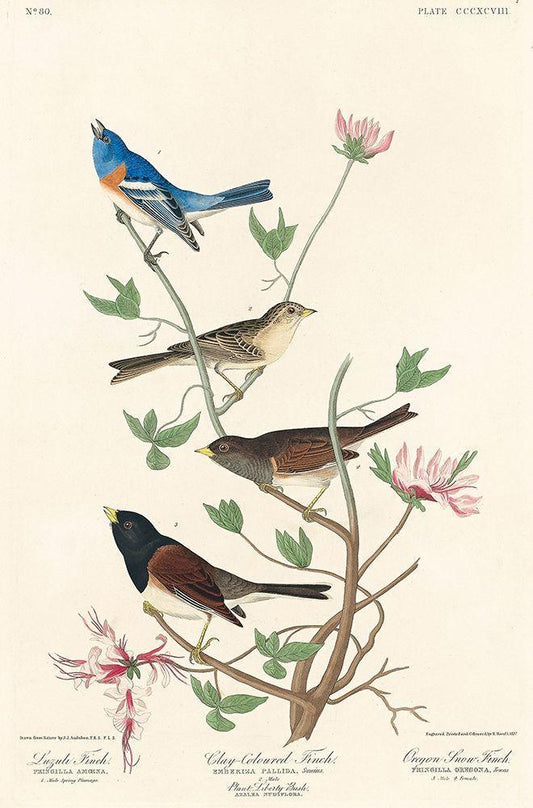 Lazuli Finch, Clay-coloured Finch, Oregon Snow Finch White Modern Wood Framed Art Print with Double Matting by Audubon, John James
