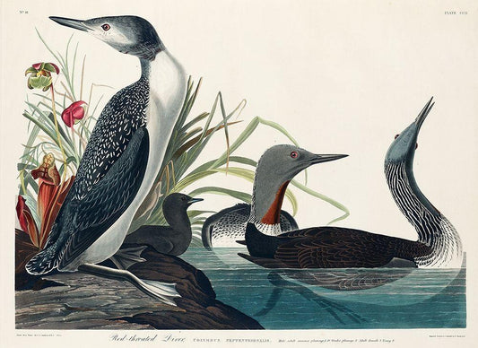 Red-Throated Diver White Modern Wood Framed Art Print with Double Matting by Audubon, John James