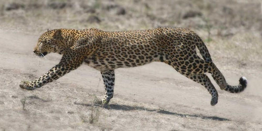 Leopard Hunting White Modern Wood Framed Art Print with Double Matting by Bennion, Scott