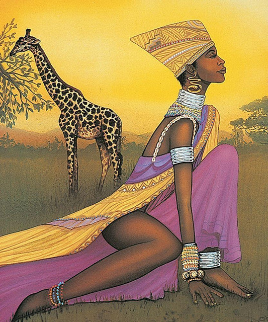 Princess and Giraffe White Modern Wood Framed Art Print with Double Matting by Unknown