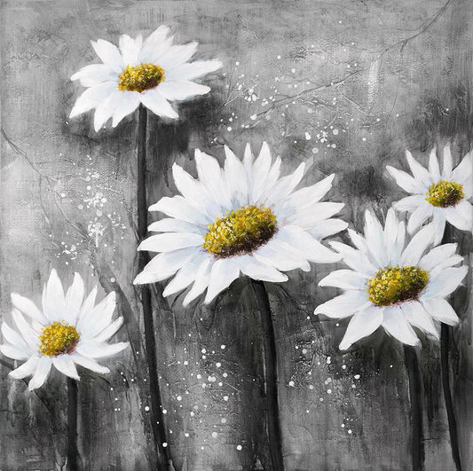 Daisies White Modern Wood Framed Art Print with Double Matting by Atelier B Art Studio