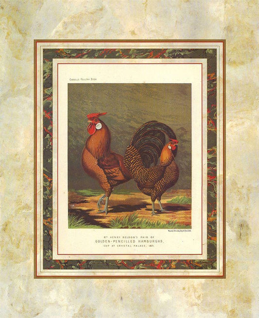 Golden Pencilled Hamburghs, Cassells Poultry Book White Modern Wood Framed Art Print with Double Matting by Ludlow, J.W.