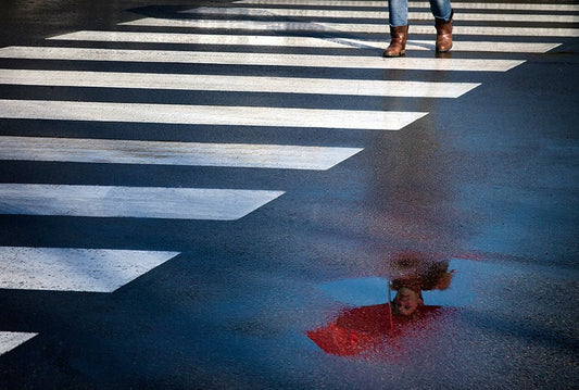 People Crossing Black Ornate Wood Framed Art Print with Double Matting by Tajima, Koji