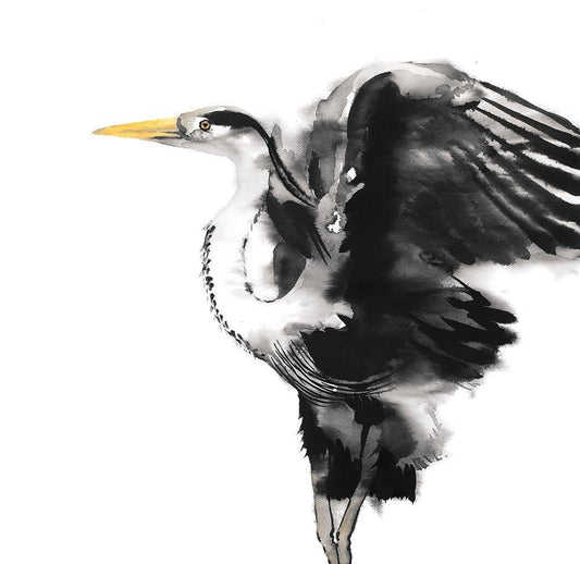 HERON White Modern Wood Framed Art Print with Double Matting by Atelier B Art Studio