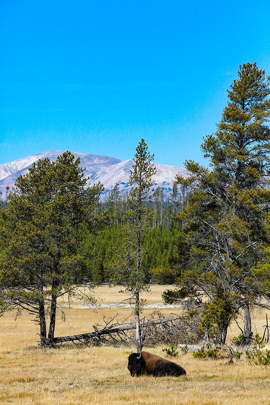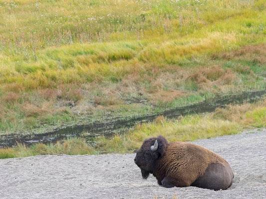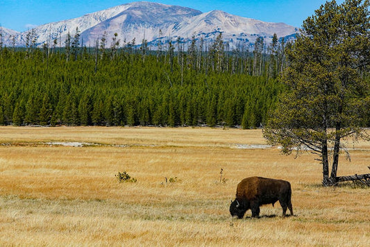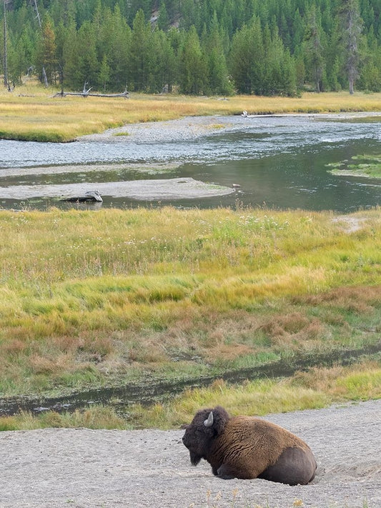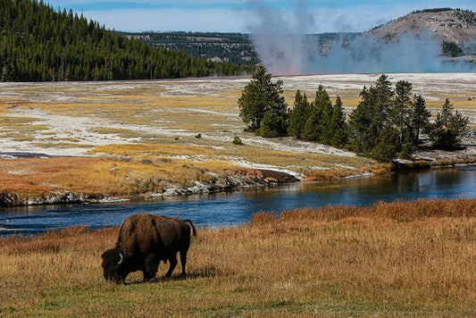 Yellowstone National Park-USA-Bison-buffalo-Steam-Old Faithful-Yellowstone River Black Ornate Wood Framed Art Print with Double Matting by Sienda, Jolly