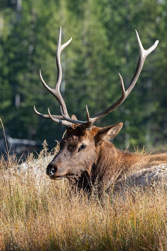 USA-Wyoming-Yellowstone National Park-Madison-Madison River-Male North American elk Black Ornate Wood Framed Art Print with Double Matting by Hopkins, Cindy Miller