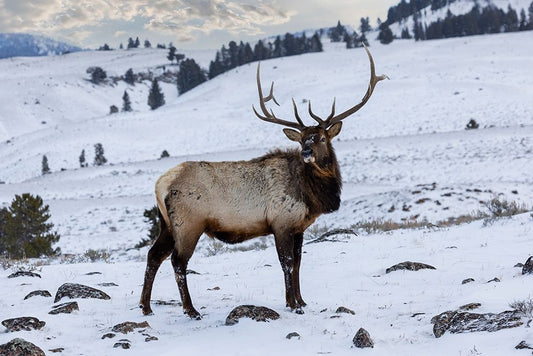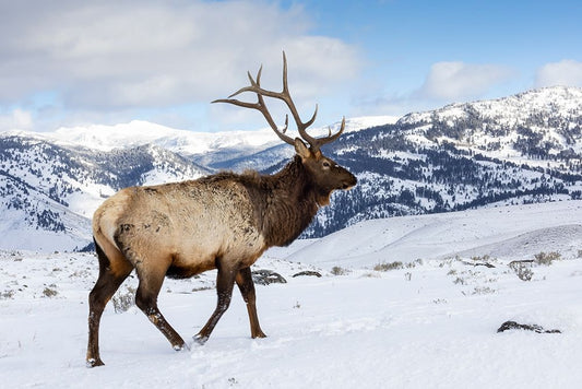 USA- Wyoming- Yellowstone National Park. Lone bull elk in snow Black Ornate Wood Framed Art Print with Double Matting by Gulin, Darrell