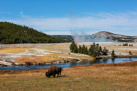 Yellowstone National Park-USA-Wyoming Buffalo and Old Faithful Black Ornate Wood Framed Art Print with Double Matting by Sienda, Jolly