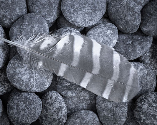 USA-Washington State-Seabeck Raptor feather on rocks Black Ornate Wood Framed Art Print with Double Matting by Jaynes Gallery