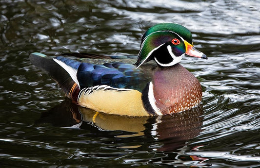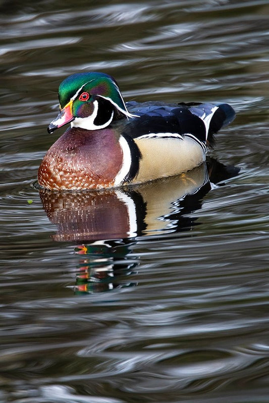 USA- Washington State- Sammamish. Yellow Lake with male drake wood duck Black Ornate Wood Framed Art Print with Double Matting by Gulin, Darrell