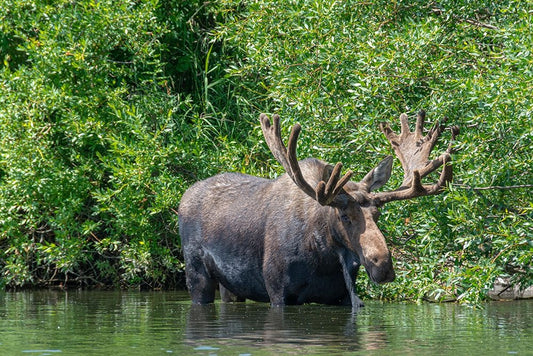 USA-Idaho-Bull Moose in Teton River Black Ornate Wood Framed Art Print with Double Matting by Garber, Howie