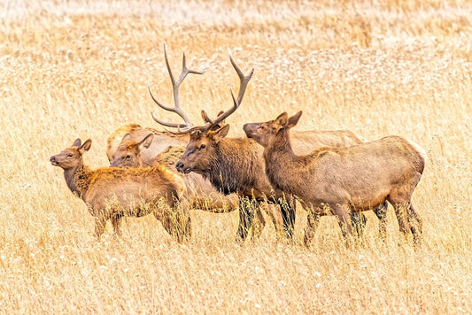 USA-Colorado-Rocky Mountain National Park North American elk male and females in mating season Black Ornate Wood Framed Art Print with Double Matting by Jaynes Gallery