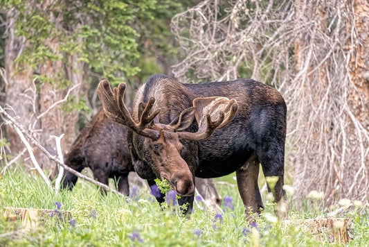 USA-Colorado-Cameron Pass Shiras moose male and female grazing Black Ornate Wood Framed Art Print with Double Matting by Jaynes Gallery