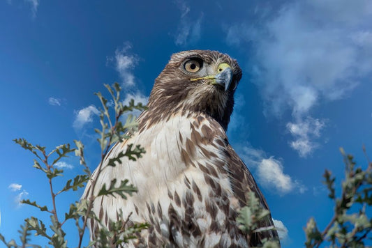 Closeup of red tailed hawk. Black Ornate Wood Framed Art Print with Double Matting by Sederquist, Betty