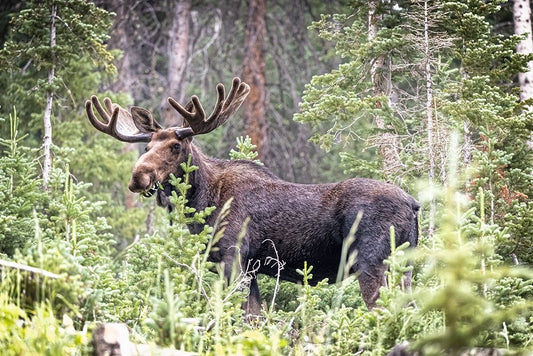 USA-Colorado-Cameron Pass Shiras male moose grazing in forest Black Ornate Wood Framed Art Print with Double Matting by Jaynes Gallery