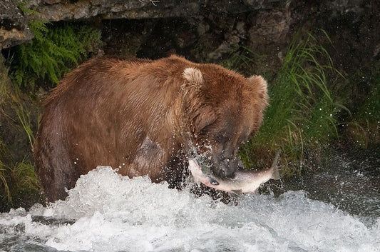 Brown Bear catching salmon at Brooks Falls-Katmai National Park-Alaska-USA Black Ornate Wood Framed Art Print with Double Matting by Su, Keren