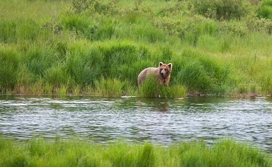 Brown Bear in the grass by Brooks River-Katmai National Park-Alaska-USA Black Ornate Wood Framed Art Print with Double Matting by Su, Keren