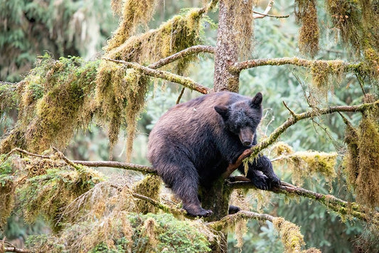 Cub resting in a tree next to Anan Creek. Black Ornate Wood Framed Art Print with Double Matting by Sederquist, Betty