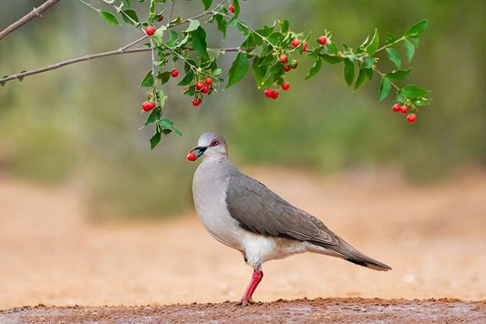 White-tipped Dove-Leptotila verreauxi-feeding on Manzanita fruits Black Ornate Wood Framed Art Print with Double Matting by Ditto, Larry