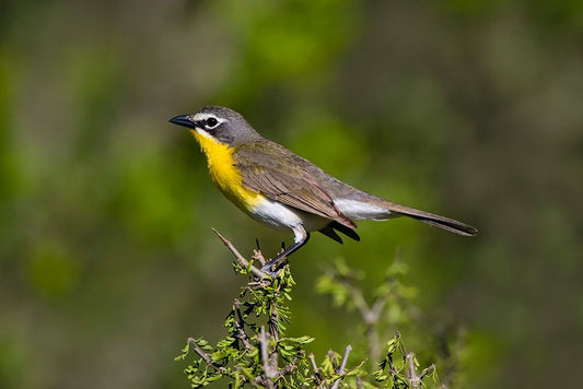 Yellow-breasted chat adult perched in dense brush Black Ornate Wood Framed Art Print with Double Matting by Ditto, Larry