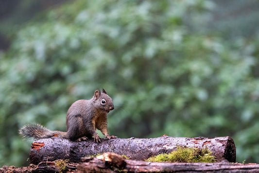 Douglas Squirrel standing on a log Black Ornate Wood Framed Art Print with Double Matting by Horton, Janet