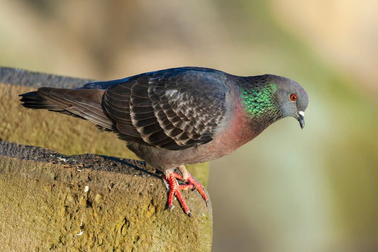 Pigeon perched on a stone wall Black Ornate Wood Framed Art Print with Double Matting by Haseltine, Tom