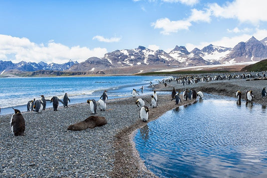 Southern Ocean-South Georgia-Salisbury Plain-king penguin-southern elephant seal Black Ornate Wood Framed Art Print with Double Matting by Goff, Ellen B.