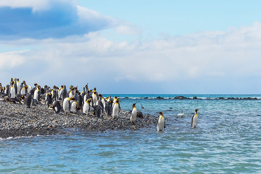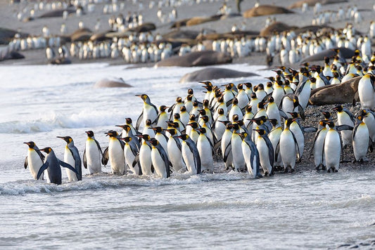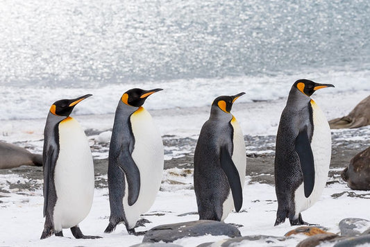 King penguins on the beach-Gold Harbour-South Georgia-Antarctica Black Ornate Wood Framed Art Print with Double Matting by Su, Keren