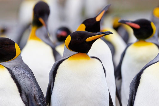 Antarctica. A conference of King Penguins. Black Ornate Wood Framed Art Print with Double Matting by Muir, Janet