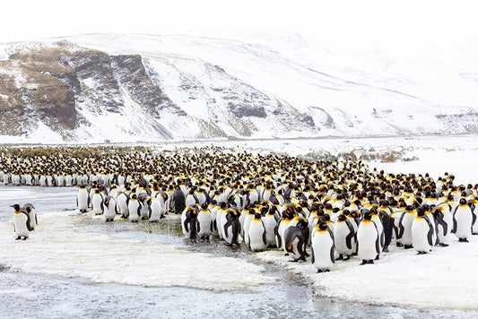 Southern Ocean-South Georgia-Salisbury Plain-Non breeding adults congregate on the icy plains Black Ornate Wood Framed Art Print with Double Matting by Goff, Ellen B.