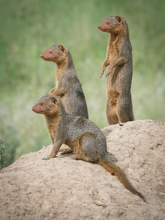 Africa-Tanzania A family of pygmy mongoose keeps vigil from atop an ant hill in the Serengeti Black Ornate Wood Framed Art Print with Double Matting by Sederquist, Betty