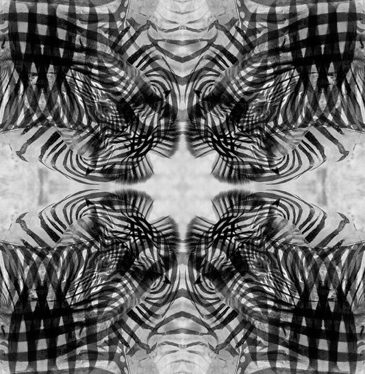 Black and white kaleidoscope abstract of a zebra Black Ornate Wood Framed Art Print with Double Matting by Jaynes Gallery