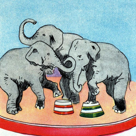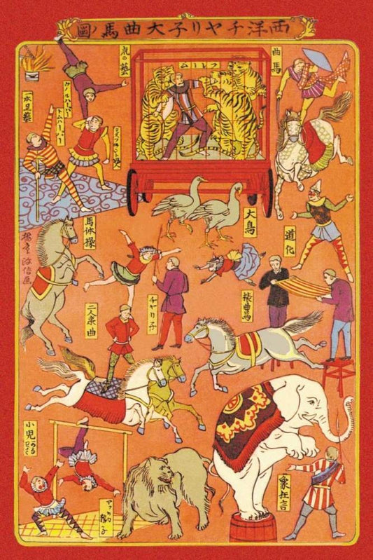 The Circus - Animals and Performers Black Ornate Wood Framed Art Print with Double Matting by Vintage Elephant