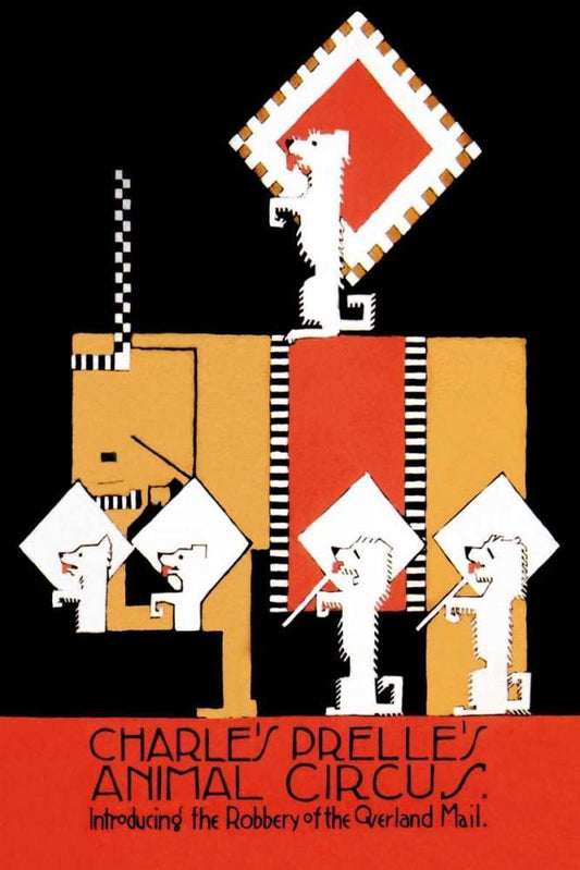 Charles Prelles Animal Circus Black Ornate Wood Framed Art Print with Double Matting by Vintage Elephant