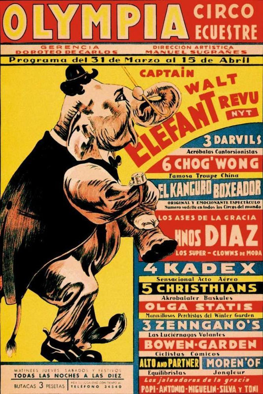 Olympia Circo Ecuestre - Olympia Circus Black Ornate Wood Framed Art Print with Double Matting by Vintage Elephant