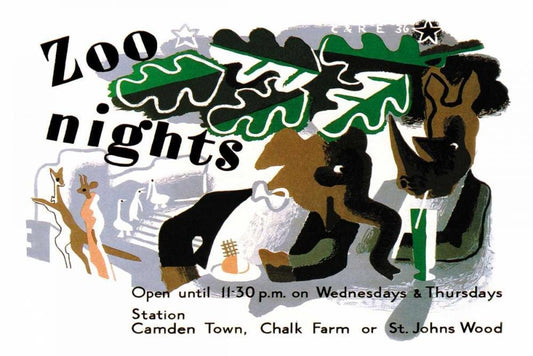 Zoo Nights Black Ornate Wood Framed Art Print with Double Matting by Vintage Elephant