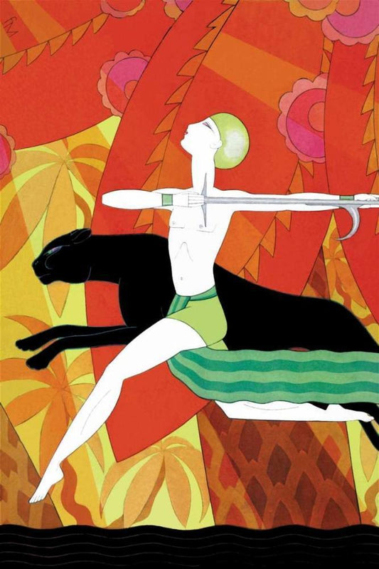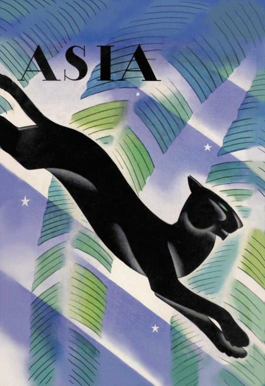 Stalking Panther, 1934 Black Ornate Wood Framed Art Print with Double Matting by Felton, Major