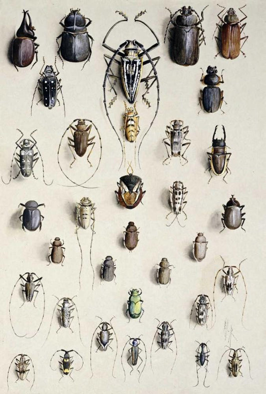 Thirty-Four Insects Black Ornate Wood Framed Art Print with Double Matting by Rowan, Marian Ellis