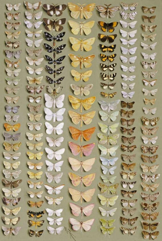 One Hundred and Fifty-Eight Moths Black Ornate Wood Framed Art Print with Double Matting by Rowan, Marian Ellis