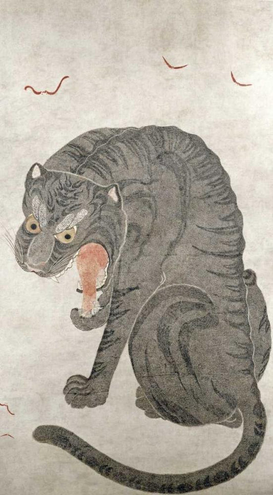 Tiger and Bats Black Ornate Wood Framed Art Print with Double Matting by Unknown